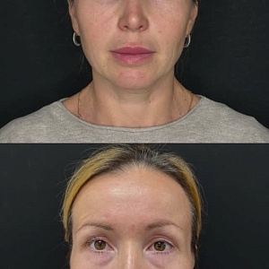 - Птоз бровей и связанное с ним нависание верхнего века;
