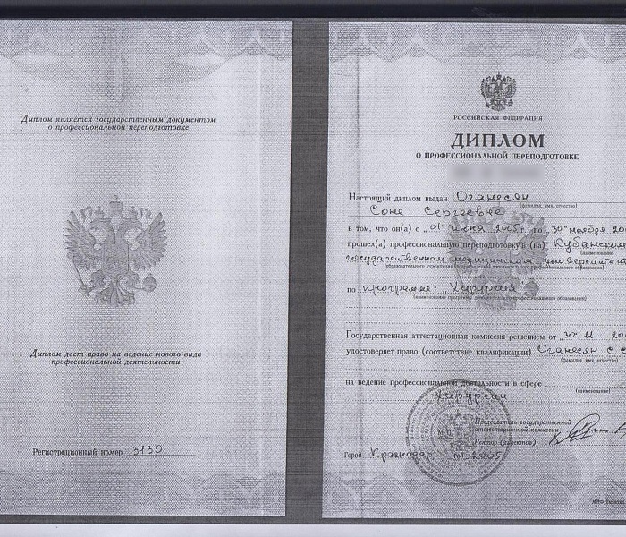 Имеет сертификат по эстетической пластической и лазерной хирургии. Действительный член Российского общества эстетической медицины.