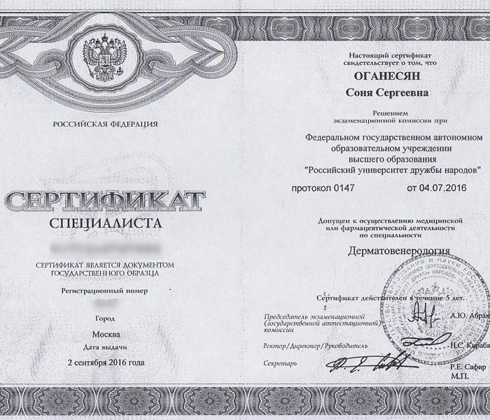 Записаться к косметологу-дерматологу Соне Сергеевне вы можете, заполнив форму на сайте!Дипломы и сертификаты